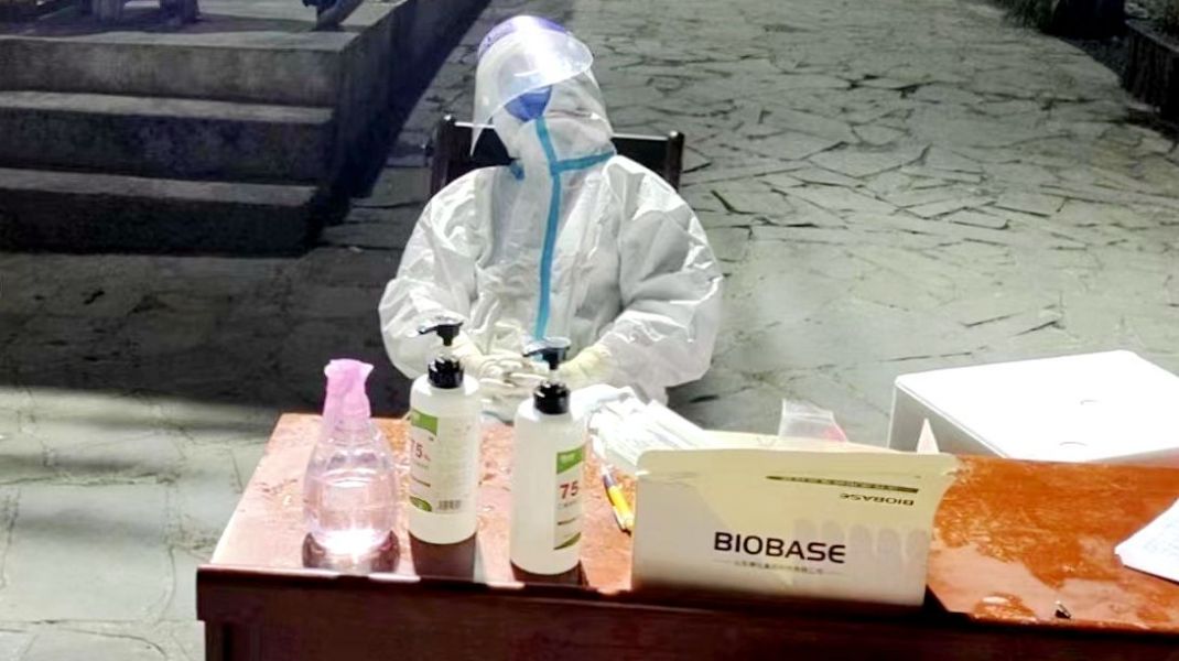 听说有几名村民正在赶来的路上,医务人员顾不及休息,坚守岗位等待村民前来核酸检测。