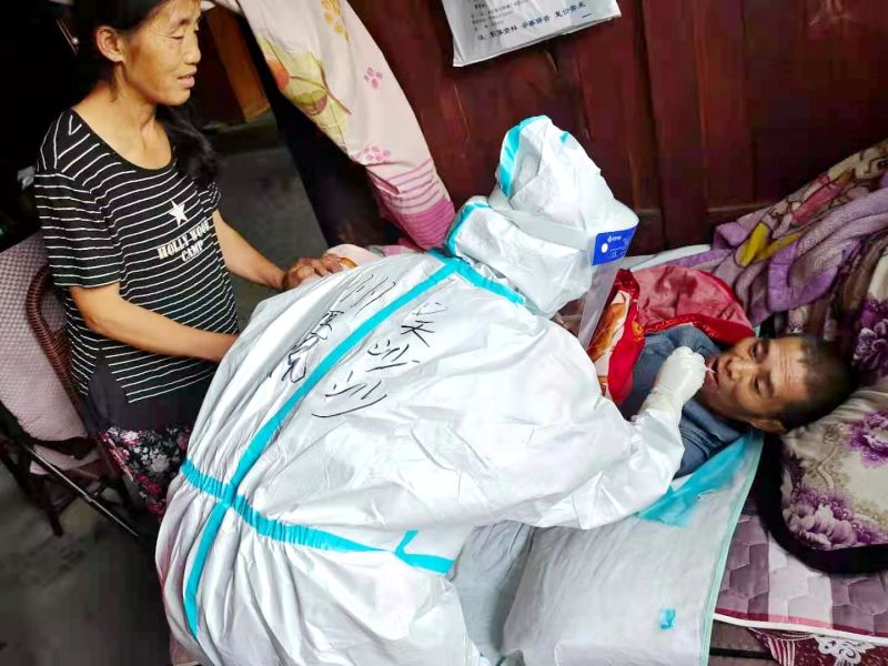 为因病不能自行前往核酸检测点采集的村民上门服务。