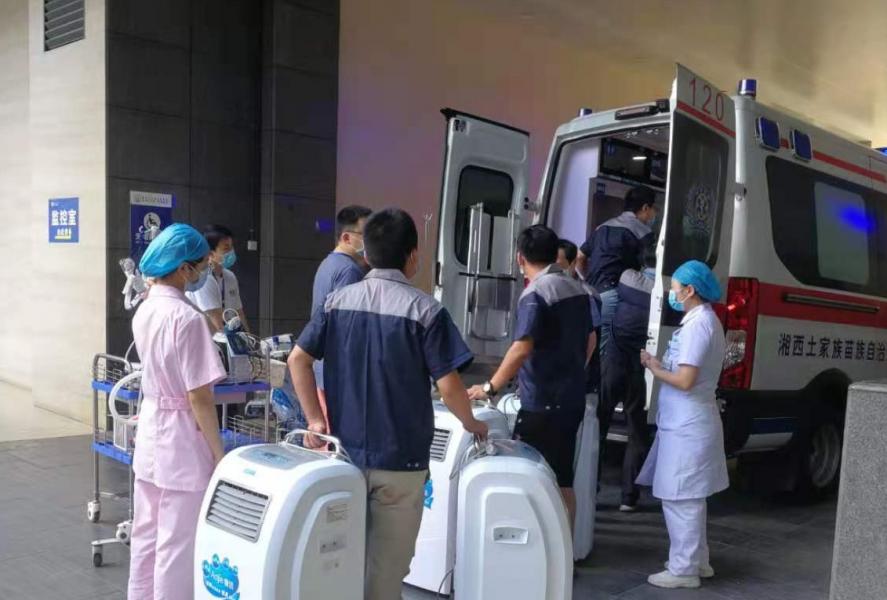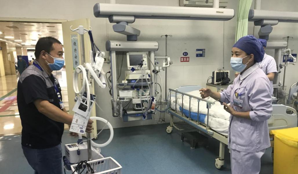 演练模拟“接上级通知,因疫情形势变化,新冠疫情防治定点医院要马上启动,医疗设备和防护物资要迅速到位”。设备科接到通知后,一边立即联系120急救中心调度车辆运输防护设备和物资,一边安排医工人员按要求紧急联系临床科室做好医疗设备调配准备,医工人员亲自或由科室医护人员将医疗设备护送至救护车上,后由医工人员随车护送至花果山疫情防治定点医院进行安装、调试。