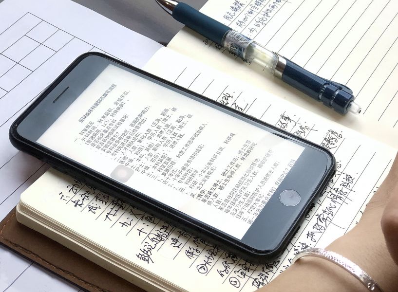 本次院志编纂工作实行全程无纸化办公,图为参会人员在手机里阅读相关资料。