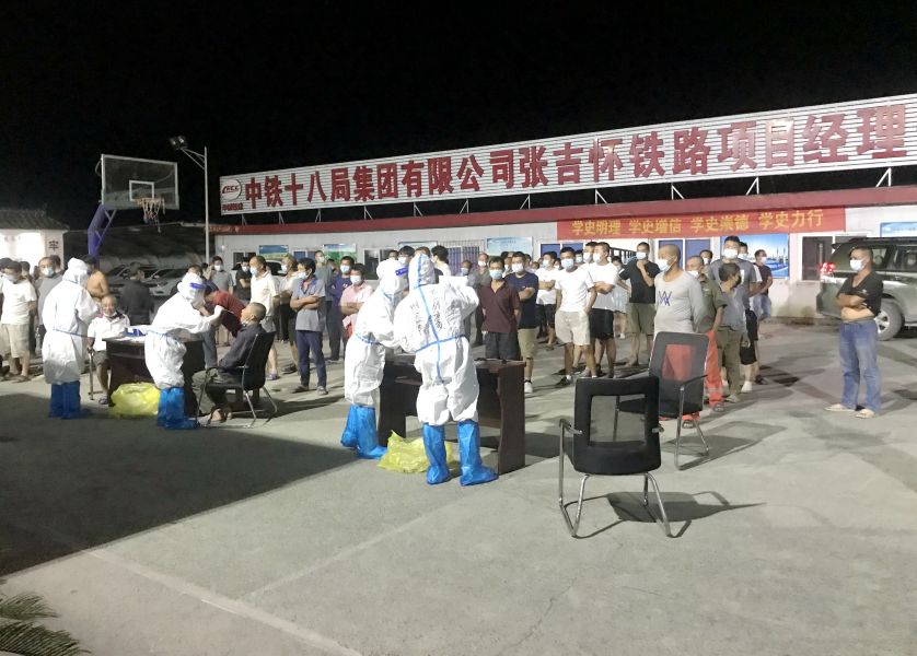 据介绍,为密织重点工程、重大项目疫情防控网,按照“应检尽检”原则,在古丈县疫情联防联控部统一调度下,自4日起,我院10名医务人员先后两次来到张吉怀铁路古丈站项目部,连夜为近200名高铁站建设者开展全员核酸检测集中采样工作。