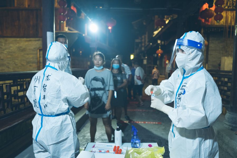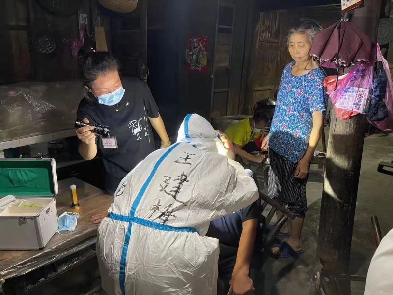 8月8日晚,我院医务人员正在为墨戎苗寨800余余村民进行核酸采集。