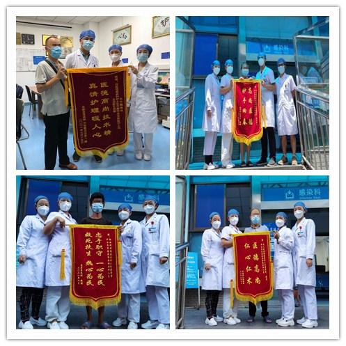杨大姐,是一名过敏性紫癜并肾炎患者,特别定制了一面印有“高尚医德,妙手回春”的锦旗以感谢感染科全体医护人员;7月28日,一位脓毒血症治疗患者也为感染科送来了一面锦旗,感谢医务人员的精心治疗及照顾;8月1日,两位耐药肺结核病的患者再送锦旗给感染科……