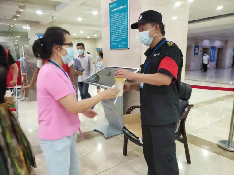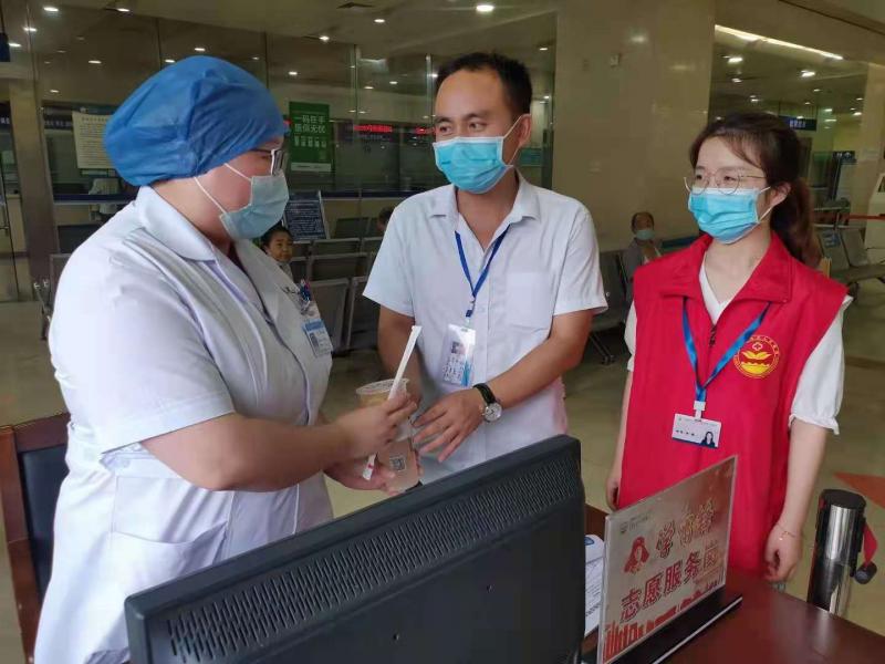在现场,院团委和保卫科人员将一杯杯饮料一一送到前线工作人员手中,并叮嘱他们注意防暑降温,感谢医护人员和后勤工作人员的辛勤付出。随后,他们又慰问了院特勤队员。