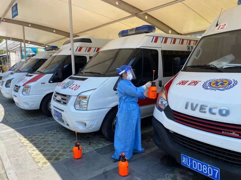 疫情就是命令,防控就是责任。接到任务后两个人迅速准备负压救护车,并详细检查车辆的性能及负压运行情况,做好II级防护出发到指定地点,与市疾控部门对接上病人后,立即将病人送至古丈县人民医院定点隔离病区,转运任务完成后,全面对救护车进行消杀,回到吉首已经是凌晨5点多钟了。