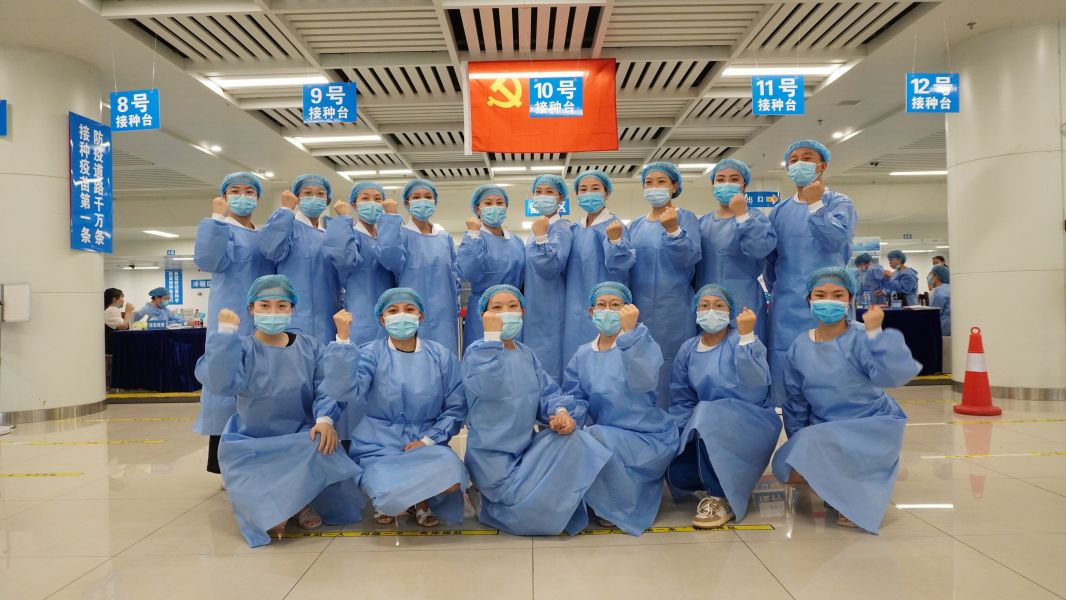 次日凌晨1:30,接到卫健委通知,要抽两个台次6个人于早晨6:40到岗,7:00开仓,以迎接最早一波群众的预防接种,接到组长电话,大家立刻积极响应,不到6:40所有成员早已穿戴整齐,并开始接诊注射工作了,他们爱岗敬业、服从调度的精神让早早前来预防接种的群众都十分感动,有位阿姨还把自己早餐让给注射点的姐妹吃。