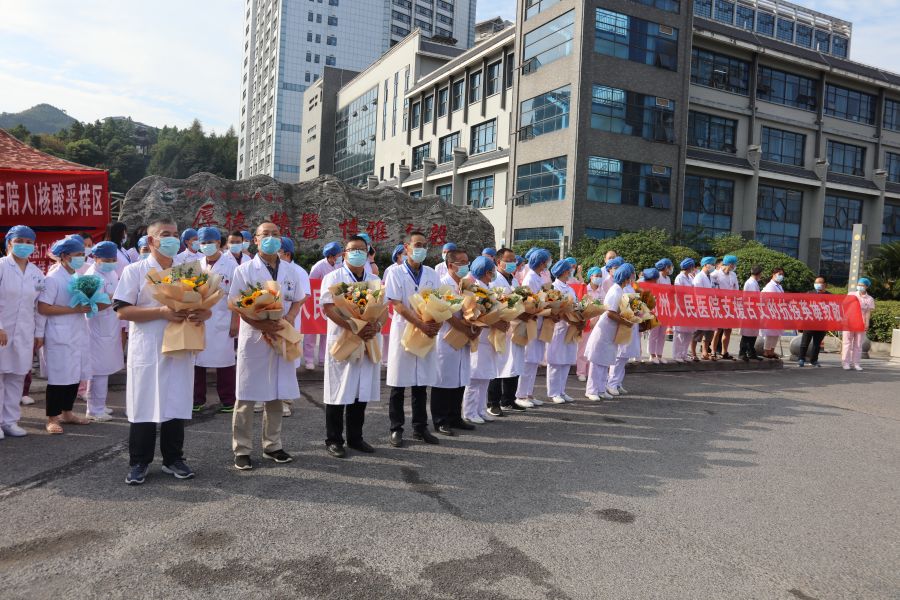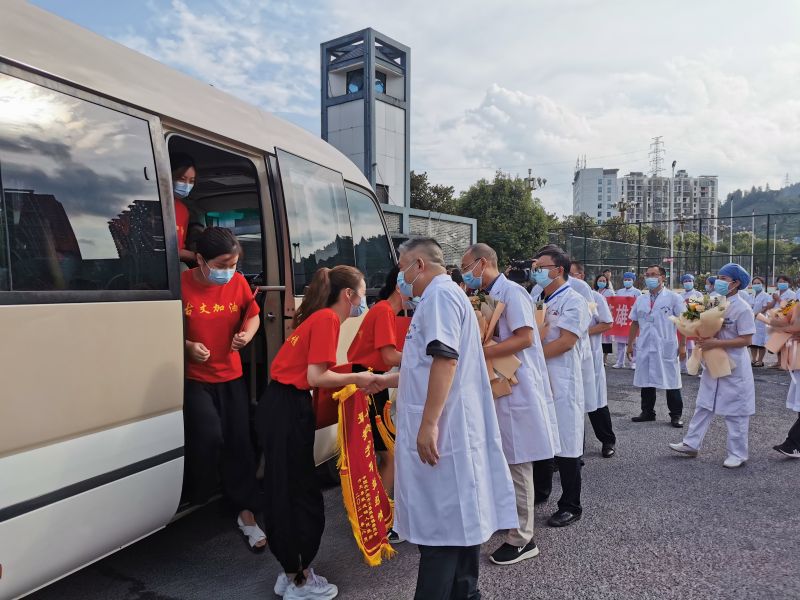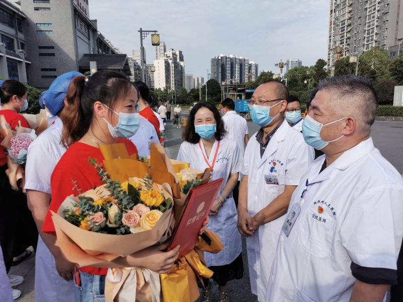 在家院领导、所有职能科室负责人、护士长,手捧鲜花、横幅,以高礼遇欢迎这10名抗疫英雄胜利归来,高度赞扬她们英勇的抗疫精神,并寄语她们继续发挥这种英勇无畏的精神,发挥带头作用,为全院高质量发展贡献力量。