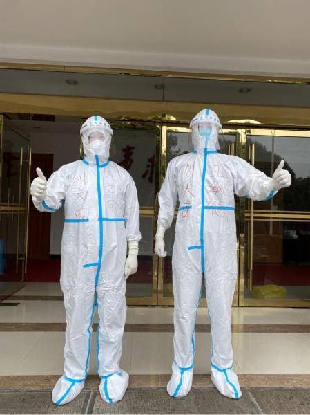 他对着领队杨建萍说:“感谢医院的信任让他能够作为大庸儿子在家乡危难时刻为此贡献一份力量!感谢湘西州老百姓的深厚情谊,这份恩情张家界人民不会忘”!穿上防护服,行使自己的使命,疫情不散,他不退却!