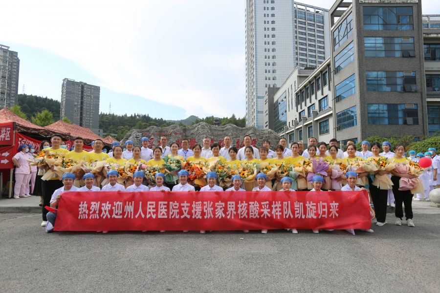 鲜花、掌声、横幅……湘西州人民医院迎门石前热闹纷呈,由院领导、职能科室负责人、医务人员、亲属组成一支欢迎队伍,以最热情的方式喜迎支援张家界的20名勇士回归大家庭。