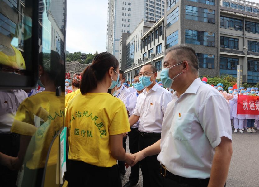 “我记得临行前领导们的谆谆嘱托,今天这支队伍平安回家。”杨建萍握着院党委书记彭剑涛、院长黄纯海的手,激动地汇报着战果。