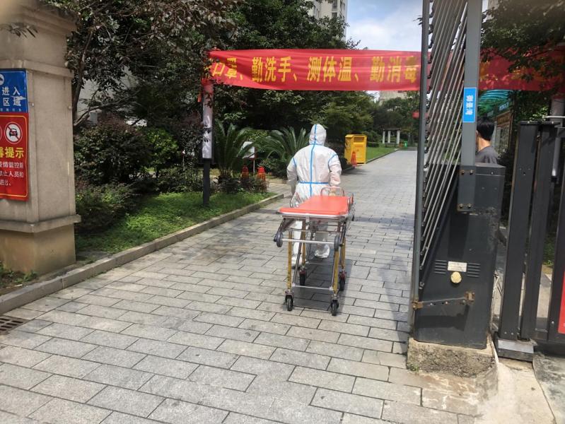 8月8日晚,刚抵达张家界的唐健就接到转运确诊病人的任务,他立即开始穿戴防护装备,10分钟后,一辆挂着“湘U”牌照的负压救护车驶向目的地。由于任务的紧急性和不确定性,经常凌晨还在待命执行任务。特别是在8月9日、10日两天,他共转运了12名确诊患者,累计工作“作战”15个小时以上,因天气炎热防护服内早已大汗淋漓。