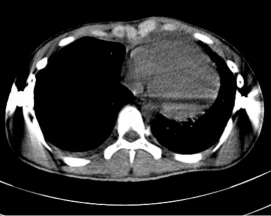 术前CT显示胸前区凹陷畸形导致心脏明显受压移位