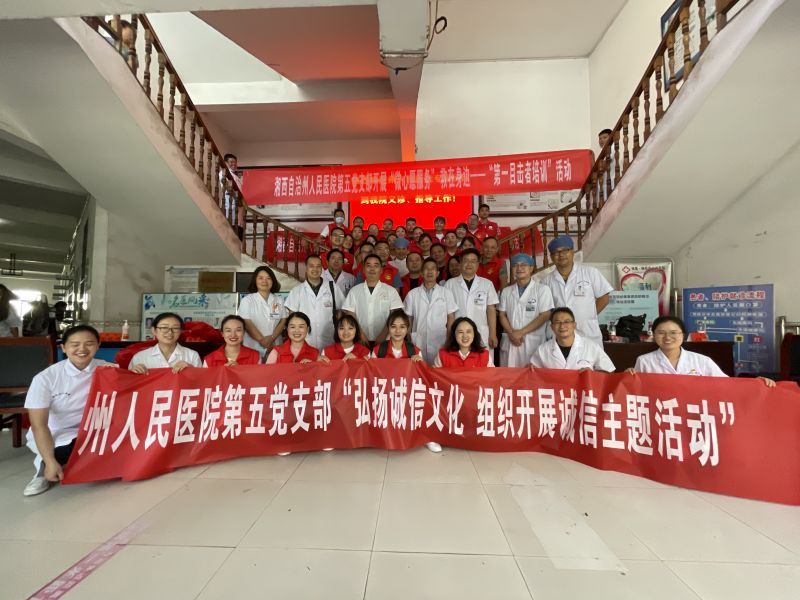 9月25日上午,湘西州人民医院第五党支部组织党员、入党积极分子、共青团员、青年志愿者和院内相关学科专家一行50人,深入凤凰县阿拉镇卫生院,开展主题党日暨“保稳促定、走进美丽乡村”“助力乡村振兴、我为群众办实事”“弘扬诚信文化”“微心愿服务”和“第一目击者培训”等系列实践活动,为当地群众义诊100多人次,免费发放2600多元的药品及600份健康宣教资料。