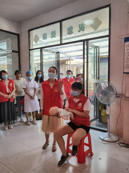 志愿者们组织群众开展健康知识宣教,发放宣传资料,并进行心肺复苏、海姆立克法“现场救护第一目击者”培训等系列活动。
