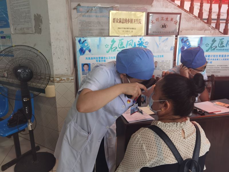 在凤凰县阿拉镇卫生院义诊活动现场,专家们耐心细致的为当地群众看诊,认真查阅住院患者资料,指导完善诊疗方案,针对业务学习、人才培养、规划建设等方面工作与阿拉镇卫生院进行了深入交流。
