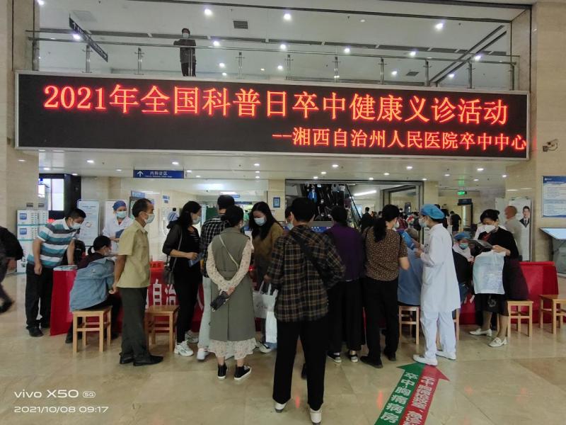 为积极响应以“决胜全面小康、践行科技为民”为主题的2021年全国科普日,10月8日,湘西州人民医院卒中中心在门诊大厅开展卒中健康教育义诊活动。