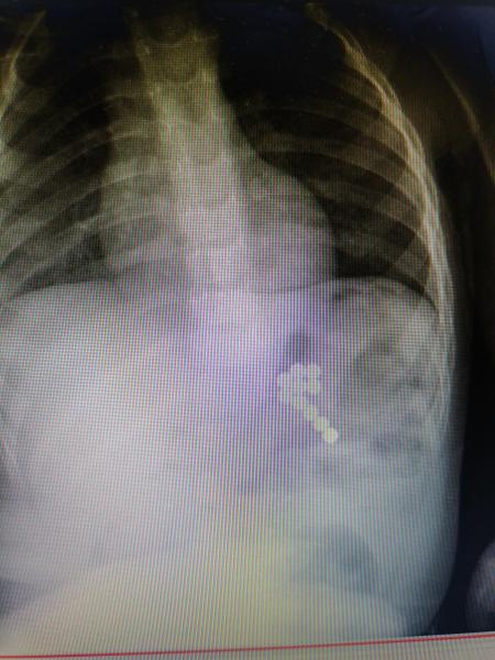 近日,家住泸溪县合水镇的2岁幼儿因莫名腹痛、不吃东西、呕吐,当地乡镇卫生院诊断为“胃肠炎”,治疗6天后病情愈发严重,遂至泸溪县人民医院。经腹部X线检查,确诊为“消化道异物”“消化道穿孔”“急性弥漫性腹膜炎”,随后紧急转往我院治疗。
