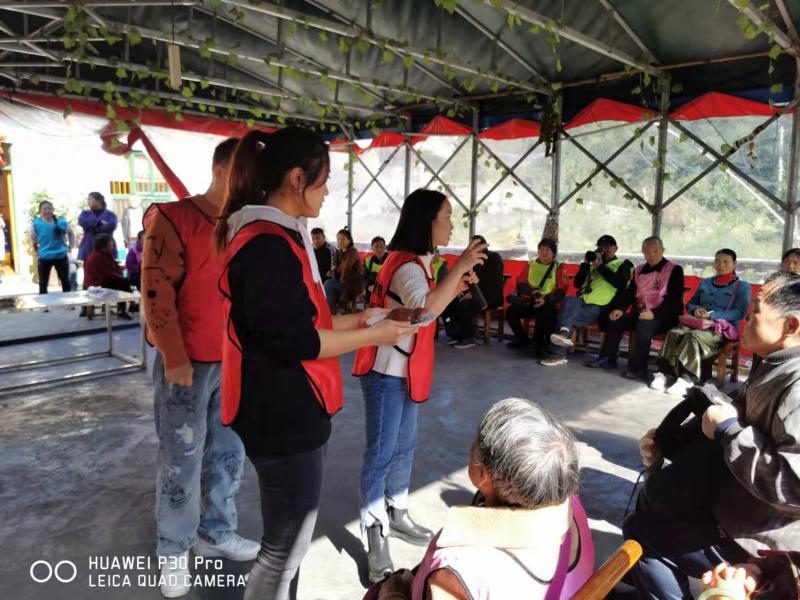 支部为群众发放制作的健康宣传资料,为他们现场充电,弥补他们预防和治疗相关疾病方面的知识不足。