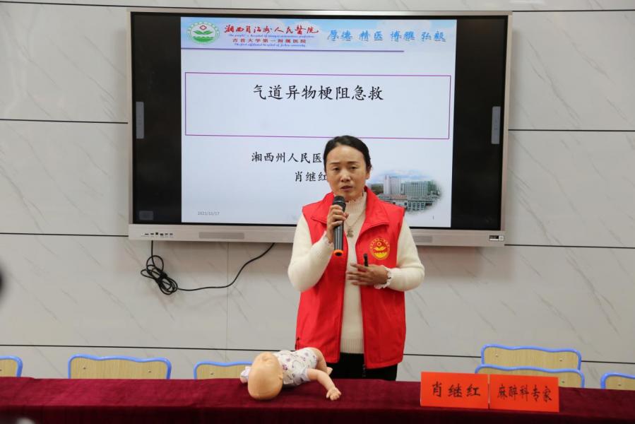 除了全方位义诊咨询和健康规划指导服务外,志愿者们还针对全校师生开展了“现场救护——第一目击者行动”培训,旨在进一步增强教师和学生的应急救护能力和实践操作能力。现场救护培训团队就CPR(心肺复苏)急救技术、气道异物梗阻(海姆立克)的急救技术、创伤救护(止血、包扎、骨折固定)等为该校师生开展了理论授课及操作培训。整个培训过程学员们认真听讲,反复练习。培训后,部分学员们还通过理论考试和操作考试后,获得了由湖南省紧急医学救援培训中心颁发的“第一目击者”合格证书。
