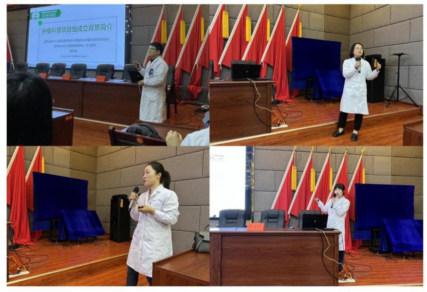 宣讲会上,项目组成员介绍肿瘤科普项目组成立背景,并就直肠癌、乳腺癌、肺癌这三种湘西常见肿瘤的防治知识进行详细讲解,呼吁大家保持健康的生活方式,戒掉一些不良的生活习惯,重视定期体检,正确认识肿瘤,倡导“早发现、早诊断、早治疗”抗肿瘤治疗理念。