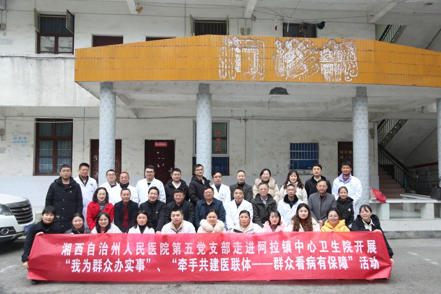12月24日,湘西州人民医院第五党支部走进凤凰县阿拉营镇中心卫生院开展主题党日活动暨“我为群众办实事”“共建医联体 群众看病有保障”活动。