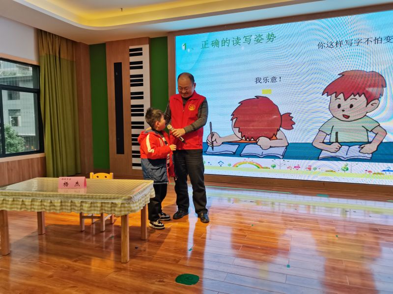 活动现场,杨杰以《我爱我的眼睛》为题,以图文的形式、生动的讲述,让幼儿了解眼睛的构造以及如何保护眼睛,教育幼儿要从小养成保护视力,爱护眼睛的好习惯;与此同时,他还通过自制的护眼视频的向幼儿宣传近视眼的危害及预防近视的措施,让孩子们了解眼睛在日常生活中的作用以及如何保护眼睛;希望各班老师将护眼知识分享给各位家长朋友,家园联手起来共同保护幼儿的眼健康。