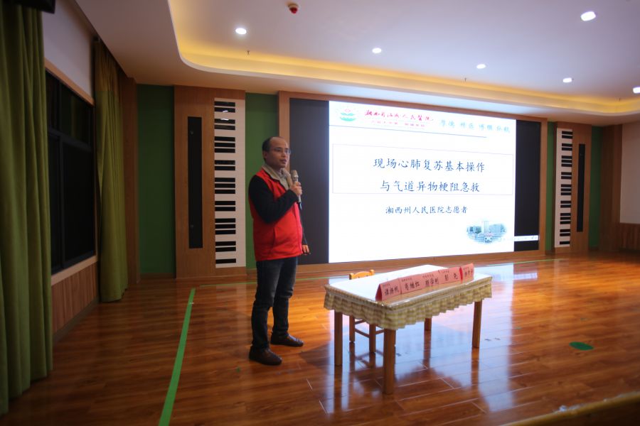 为了提高教职员工的安全意识、急救知识,降低突发事件对幼儿造成的伤害,更好的为孩子们的健康成长保驾护航,11月24日,州人民医院第三党支部及志愿者们走进吉首市蓓蕾幼儿园开展“医路同行”新时代志愿服务主题实践活动暨“我为群众办实事”“第一目击者培训”活动。