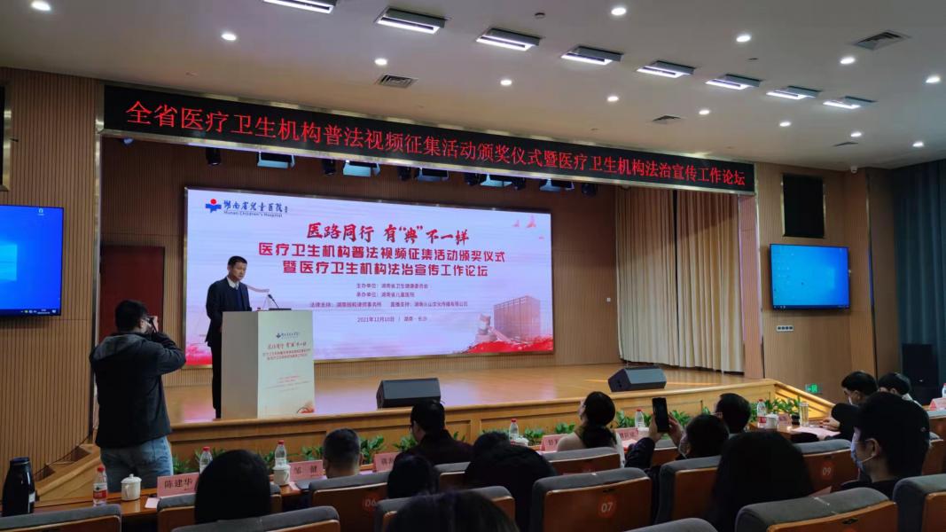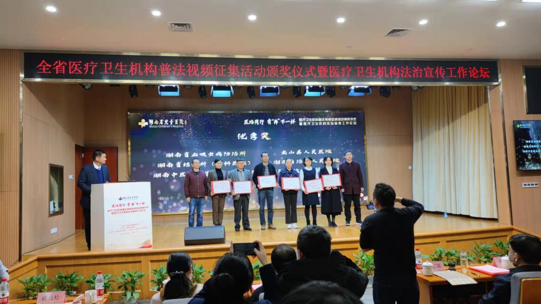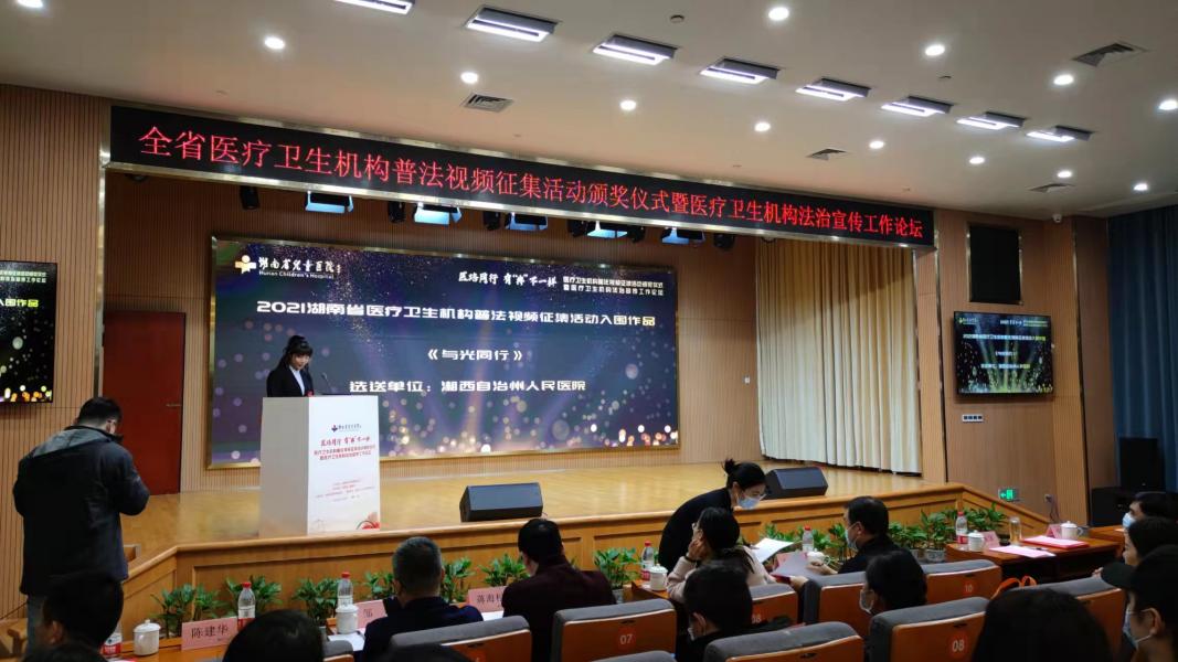 12月10日,湖南省卫健委举行全省医疗卫生机构普法视频征集活动颁奖仪式暨医疗卫生机构法治宣传工作论坛。湘西州人民医院报送的普法微视频作品《与光同行》荣获优秀奖。