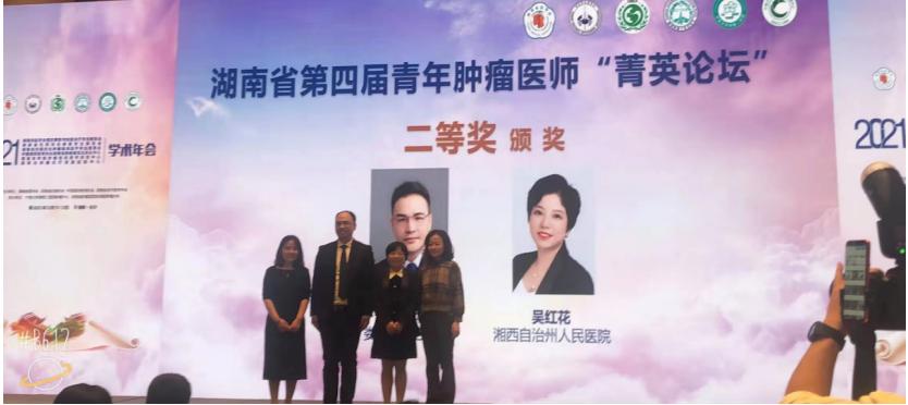12月11日至12日,2021年湖南省肿瘤精准治疗高峰论坛在湖南长沙举行。肿瘤中心副主任徐朝久带领吴红花、张金花、吴慧分别参加了湖南省第四届青年肿瘤医师“菁英论坛”科研设计大赛及病例汇报,并取得优异成绩。