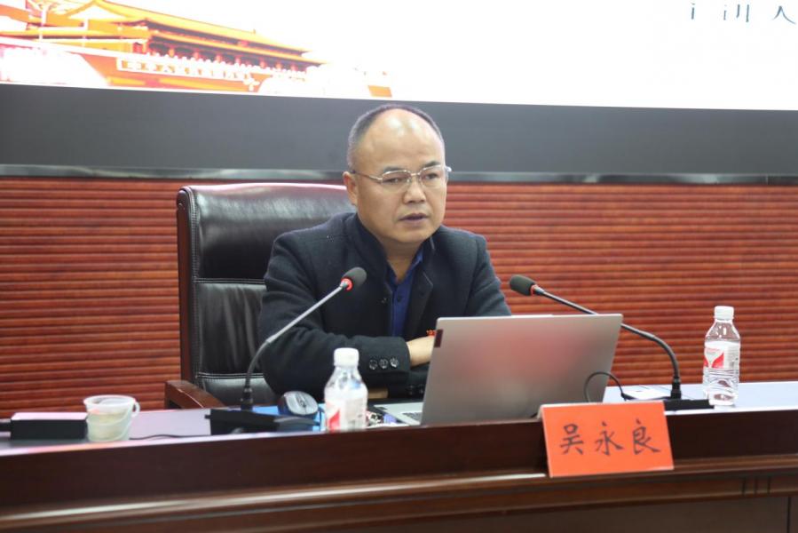 12月17日,学习贯彻党的十九届六中全会精神州委宣讲团报告会在我院报告厅举行。州委宣讲团成员、州委党校副校长、副教授吴永良作宣讲报告。院党委书记彭剑涛主持并讲话。在家院领导,各党总支书记、支部书记、支部委员,临床、医技、职能科室负责人参加学习。