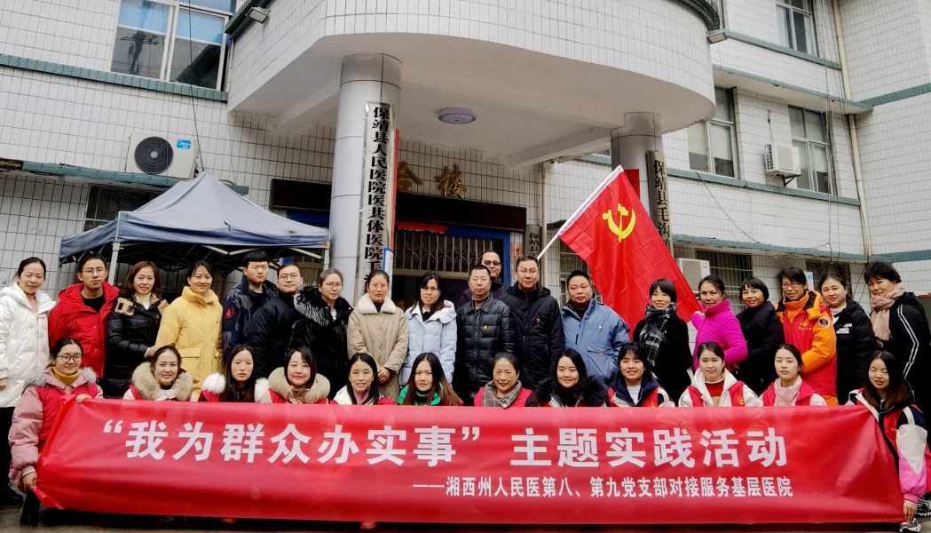 12月29日,第八、九党支部联合组织党员、入党积极分子、志愿者到保靖县毛沟镇中心卫生院开展落实“我为群众办实事”、对接服务基层医院、走进美丽湘西,以及开展学习贯彻党的十九届六中全会精神进基层微宣讲。