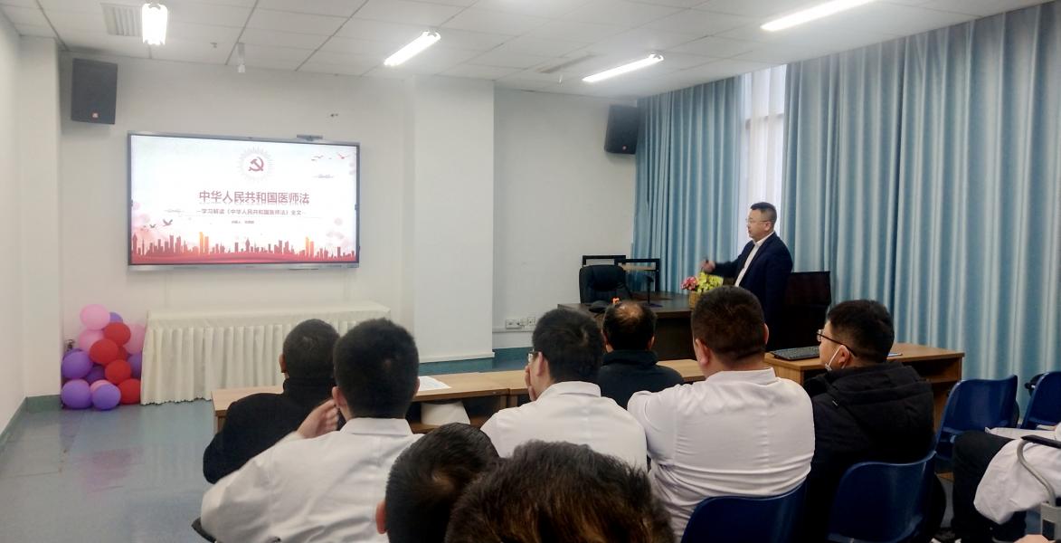 为进一步增强医务人员的医疗安全意识、法律意识、防范风险意识,提高服务能力,规范职业行为,保障医疗安全,1月7日,在新医师法即将出台之际,医疗安全管理科邀请我院法律顾问分别到肝胆外科、泌尿二科,开展关于《中华人民共和国医师法》法律知识培训,科室主任、医生、护士等参加培训。