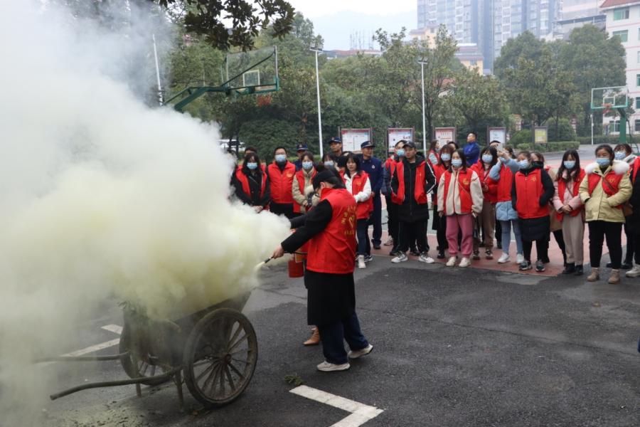 讲解员介绍了灭火器相关知识后,参加活动人员尝试使用灭火器灭火