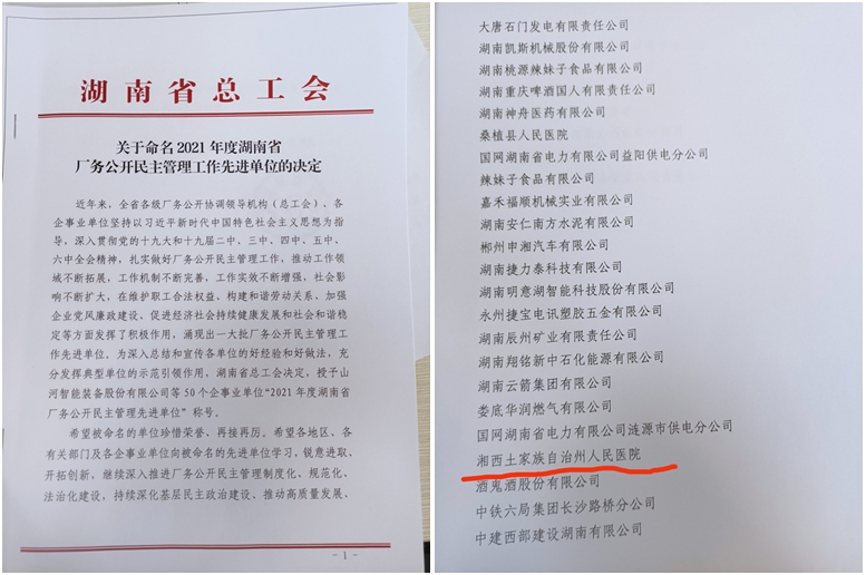 喜讯!我院荣获湖南省“厂务公开民主管理工作先进单位”