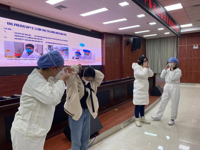 培训会由院团委书记龙金艳主持,感染科护士长、内科团总支书记李康花做防护主讲,提醒志愿者在做好车站志愿服务同时做好自我防护,根据疾病传播特点采取相应的措施隔离,以及针对不同服务人群暴露风险正确的使用和选择防护用品;我院志愿者现场示教手卫生,医用外科口罩、N95防护口罩、帽子、一次性隔离衣、防护服的穿脱,并强调操作程序和注意事项,也对新冠肺炎传播的防控知识做了详细讲解。
