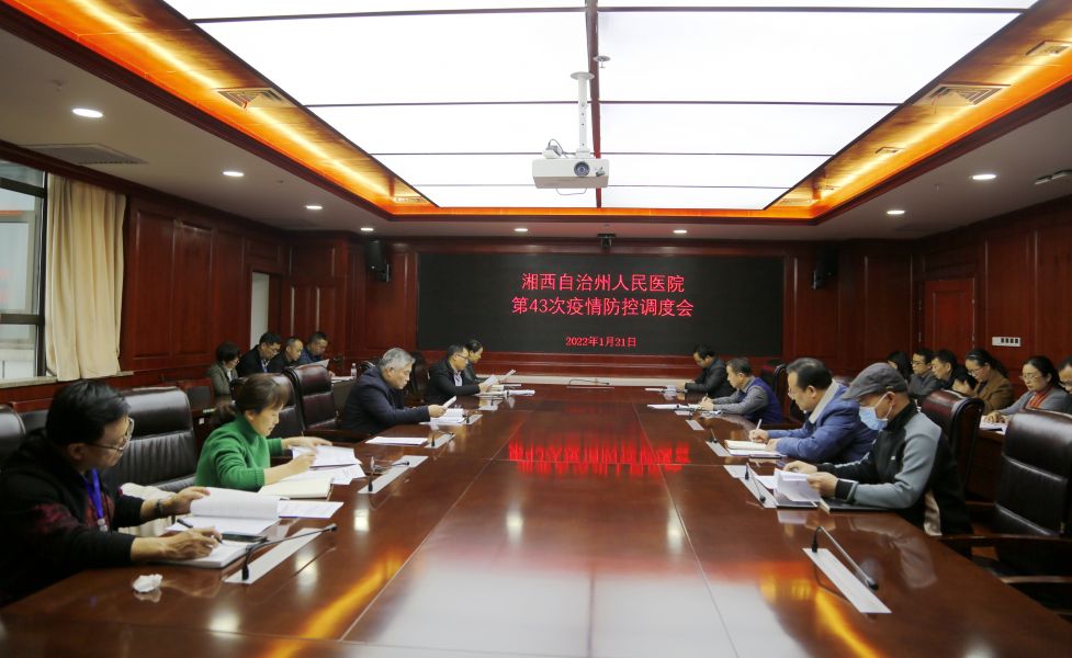 为落实省、州最新疫情防控工作要求,1月21日,我院召开第43次疫情防控调度会,部署安排春节前后疫情防控相关工作。院党委书记彭剑涛主持会议。在家院领导贾小卷、莫莉萍、向平、梁民勇、江宏冰及党办、院办、医务部、护理部、信息财务部、院感科、保卫科、传染病管理科、总务科、门诊办、医疗安全科、信息科、设备科、药剂科、人事科、监督执纪室、宣传科等相关科室负责人参加会议。