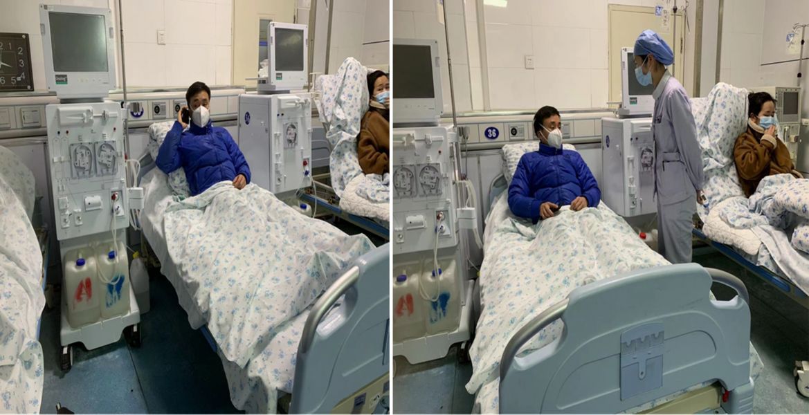 此次演练模拟血液净化中心2022年2月17日13:00,刘某长期规律血液透析患者,来院常规透析,透析期间其接到防控部门电话被判定为确诊新冠密切接触者,告知值班护士,护士立即测体温并告知医生。值班医生立即报告科主任、护士长,就地隔离患者,科主任电话告知医务科、传染病管理科、院感科、护理部,并协助对该患者进行流行病学调查、转运及指导消毒、隔离等工作,对密切接触者或密接者的密接者进行统一的医学隔离观察,并做好消毒隔离终末处置。