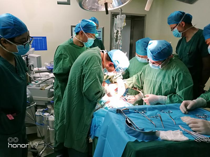 “腹主动脉破裂在腹部损伤中较少见临床主要表现为大面积血肿、伤口大量出血、失血性休克与进行性腹胀等,因血管较粗、出血迅猛,病情一般十分危急,超过50%的患者在送至医院前即死亡,术中麻醉医生予抗休克治疗,为成功抢救争取了手术时间。”主任杨闻晓介绍道:由于损伤段腹主动脉极难分离,为手术增加了难度,且非常考验医师的判断力和操作技巧,需阻断腹主动脉破裂口近端,轻柔、准确分离暴露腹主动脉,保护位于其右后方的下腔静脉,防止因过分牵扯造成静脉破裂的严重并发症,且需注意保护腰动脉,防止发生脊髓供血性损伤。
