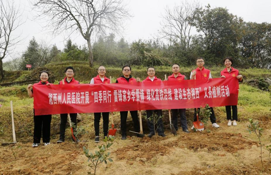 种下一片绿色,洒下一片希望。我院积极践行新时代文明实践志愿服务,用“志愿红”扮靓高铁沿线“生态绿”,并将绿色发展理念根植于心、践之于行,为生态湘西建设贡献志愿力量,巩固国家森林城市、湘西世界地质公园建设成果。