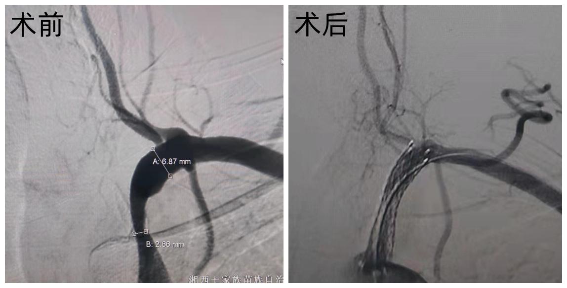 近日,湘西州人民医院神经介入建设中心成功为一名左侧锁骨下动脉盗血患者实施了动脉近端狭窄成形术,术后患者狭窄血管恢复通畅,左椎恢复正向血流,症状完全缓解。