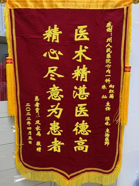 “我对他们的感激之情无以言表,所以我特写一封感谢信,感谢这样德艺双馨的好医生。”4月5日,保靖县碗米坡镇患者贾某出院时在感谢信中写道。同时精心准备了一面印有“医术精湛医德高、精心尽意为患者”的锦旗,感谢湘西州人民医院心内一科团队无微不至的关心、治疗和护理。