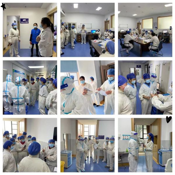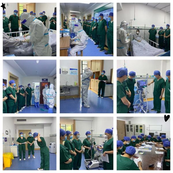 此次培训演练内容有 :新型冠状病毒肺炎诊疗方案(第九版)、新冠病毒感染院感知识、机械通气临床应用指南、心脏骤停、穿脱防护服流程、口、鼻咽拭子采集及送检流程、呼吸道暴露的应急处理、针刺伤、手套破损及防护服破损的应急处理、全面罩呼吸器的使用、CPR、呼吸球囊的使用及气管插管术、经鼻高流量呼吸湿化治疗及操作、血气分析仪操作、医疗、护理信息系统操作流程、无创及有创呼吸机使用技术操作、新冠患者收治实景演练等。