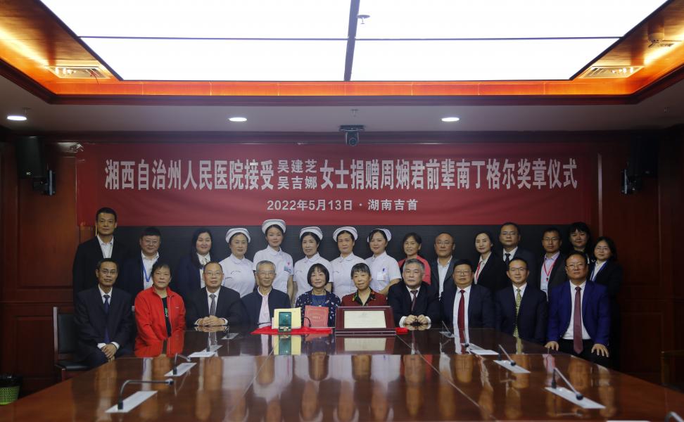 5月13日上午10时08分,国际护士节刚过,湘西自治州人民医院举行庄严仪式,院长黄纯海从吴建芝、吴吉娜手中接过周娴君的第32届南丁格尔奖章及证书,殊荣重归主人念兹在兹的故地,将永久珍藏于院史馆。