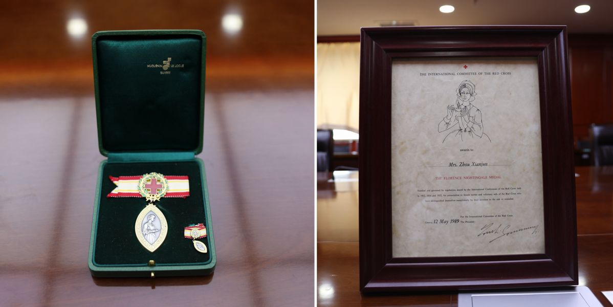 1989年7月20日,北京人民大会堂,周娴君从国家领导人李先念同志手中接过国际红十字会授予的南丁格尔奖章及证书,成为湖南省第一位、也是迄今唯一一位获此殊荣者。南丁格尔奖是全球护理界的最高荣誉,每两年评选一次,每届全球获奖者不超过50人。