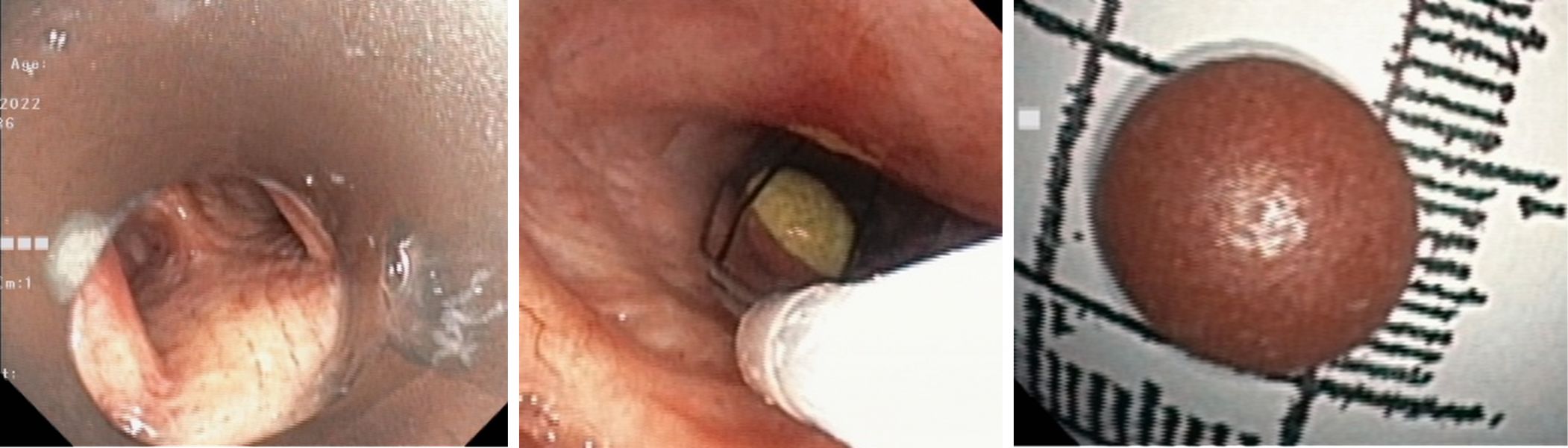 气管中的硬镜、网篮取异物、异物(药丸)顺利取出