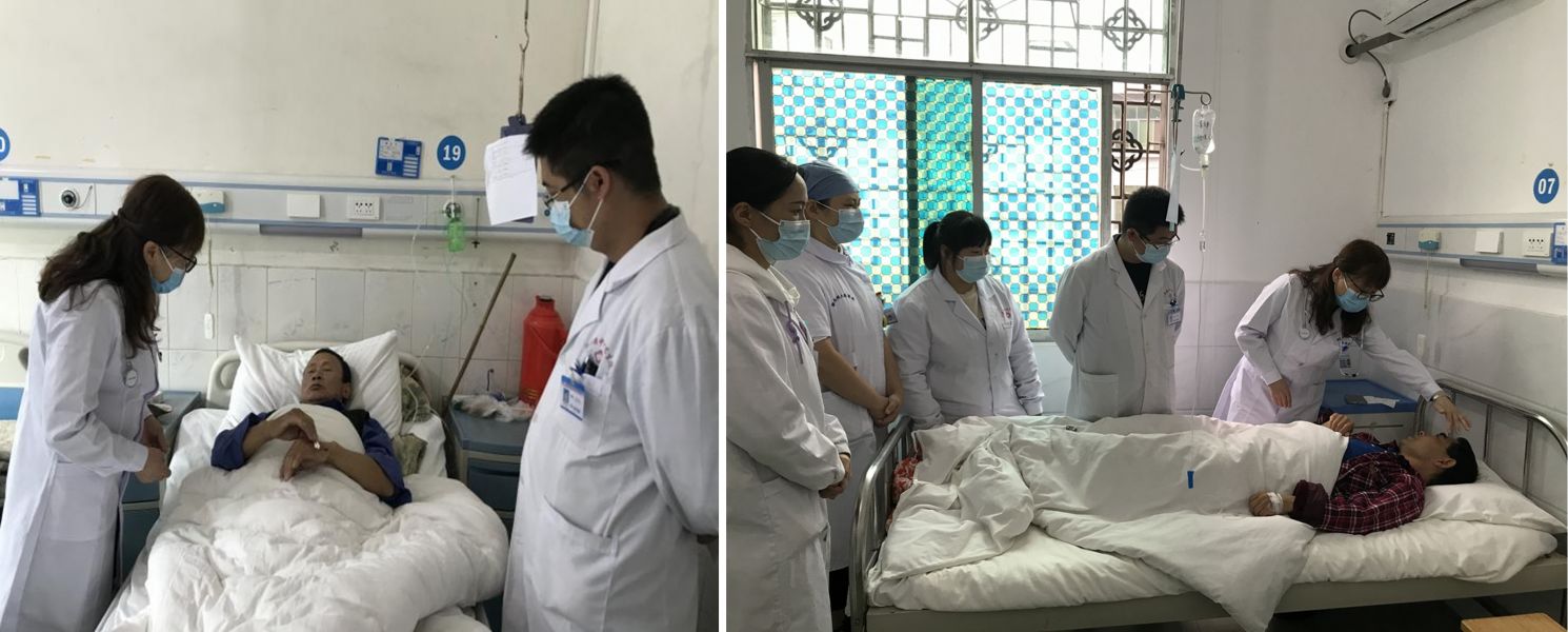活动现场,全科专业基地医护人员向来往群众宣传家庭医生签约政策、体检内容、常见病和慢性病诊治、老年人的健康管理等。同时,还进行测血压,测量血糖,进行健康体检,发放慢性疾病管理健康宣教手册,接受群众的健康咨询。随后,专家们来到河溪镇卫生院住院病区,对住院患者进行诊查指导,详细询问患者病史并仔细的体查,查阅病历资料后与主管医生进行交流,指导调整治疗方案。
