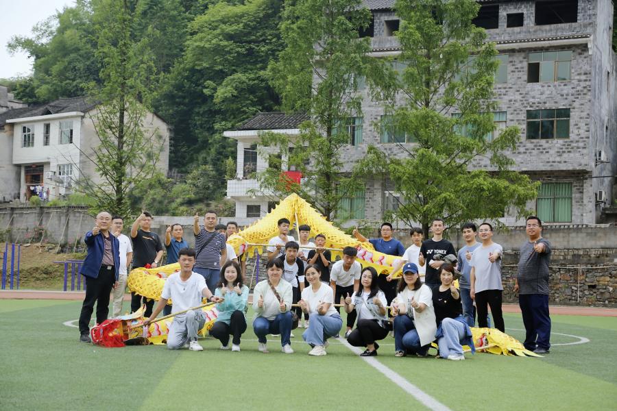 (和花垣县第三中学舞龙队的师生们合影留念)