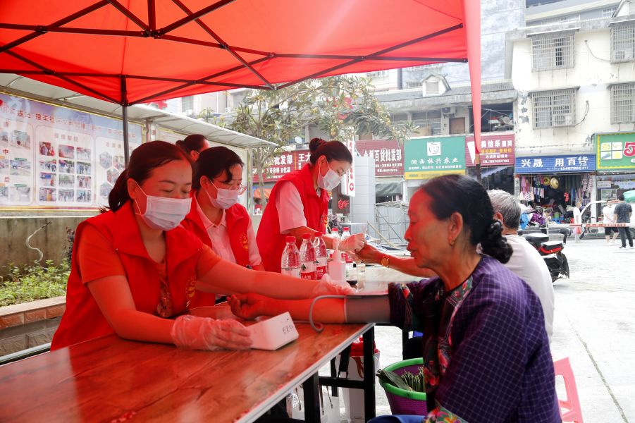 6月1日,湘西州人民医院党委成员、总会计师莫莉萍代表带领30余名在职党员到吉首市接丰社区开展党员服务报到进社区及义诊活动,积极主动为社区提供“暖心服务”,增加群众幸福感。