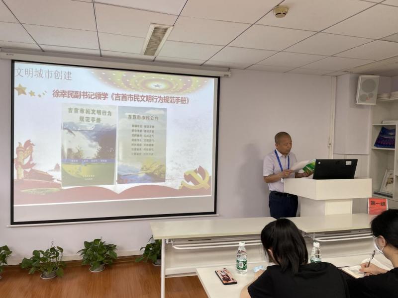 本次活动结合我院2022年民族团结进步创建及文明创建工作安排,由支部书记上党课,集中学习了《吉首市民文明行为规范手册》、全域文明创建倡议书,观看《人民的医生—我从医的这70年》和大湘西方言版《请党放心,强国有我》短片。