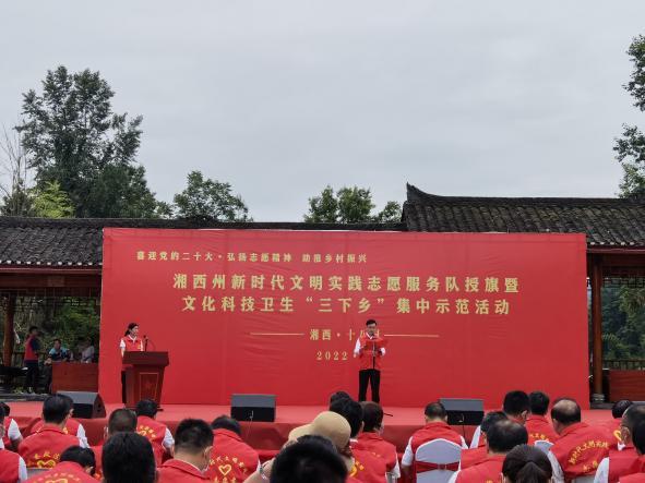 6月17日上午,湘西州新时代文明实践志愿服务暨文化科技卫生“三下乡”集中示范活动启动仪式在十八洞村举行。我院“医路同行”志愿服务队作为5个杰出志愿服务品牌之一参加活动。